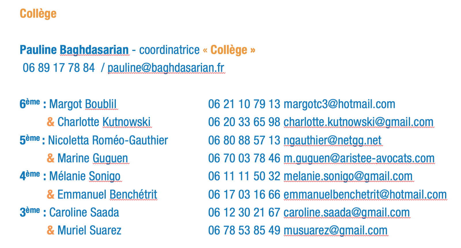 Ces derniers sont vos interlocuteurs privilégiés pour tout sujet concernant le quotidien dans la classe de votre enfant : n'hésitez pas à les contacter.